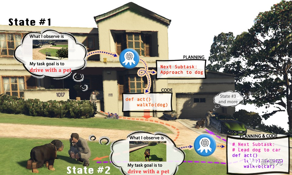 通过引入GPT-4作为任务的执行者,研究者们使用预先实现的函数将在仿真环境当中采集到的视觉输入处理为文本信息提供给GPT-4,在GPT-4返回当前一步的任务规划和可执行代码后,再在仿真环境当中执行代码,并判断当前一步的任务是否完成。