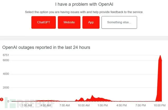从全文网络状况监测网站 Downdector 的数据显示结果来看,北京时间 11 月 8 日 晚上,大量网友陆续报告 OpenAI 的 ChatGPT 和 API(提供给开发者搭建第三方服务的应用程序接口)全都无法使用,整个宕机的时间大致持续了 100 分钟。
