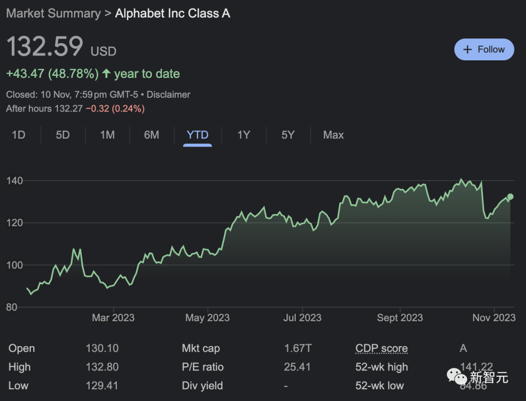 当然,谷歌的股价也不差:由于广告业务逐渐复苏,云服务器的租赁业务也已经实现盈利,谷歌股价今年已经上涨了近50%。