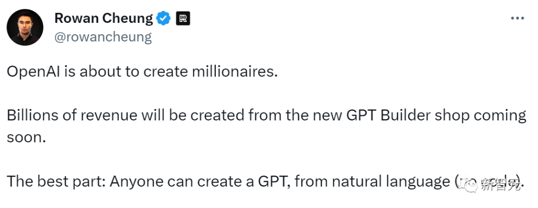 OpenAI全新推出的GPT Builder,可以让任何人都使用自然语言0代码创建GPT,这将创造数十亿美元的收入