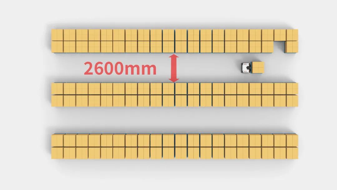 「微蜂X20S」巷道空间仅需2600mm,有效提升地堆库利用率,窄巷道搬运更轻松。