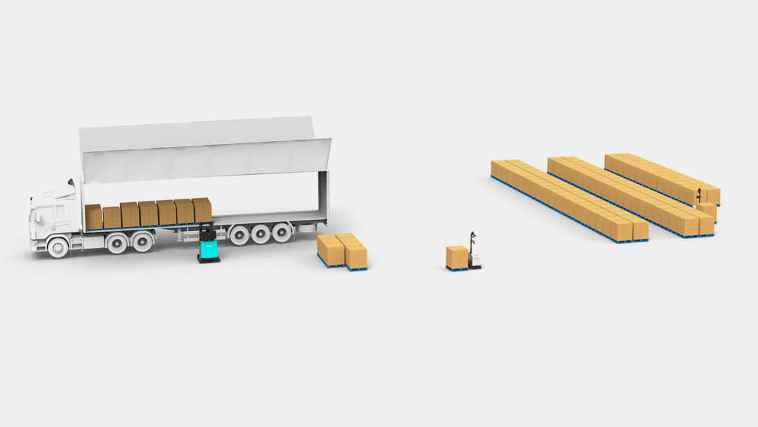 取货时,X20S行驶至托盘前方,下降叉臂、收承载轮,辅助定向轮触地,取货后,则下降承载轮、升起叉臂,前往指定地点放货。放货步骤与取货相同。