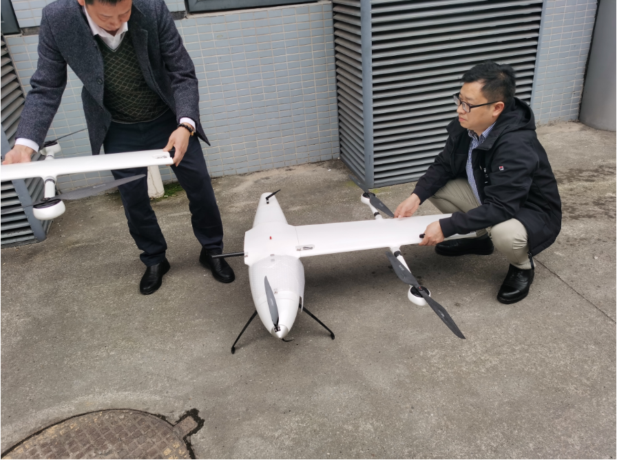 讲座结束之后,胡理事长和周总一同到叉车训练场,现场向同学们展示和讲解了固定翼无人机和多旋翼无人机真机的飞行原理、功能应用及飞行注意事项,并现场解答物流创研学社同学们日常无人机训练遇到的问题。