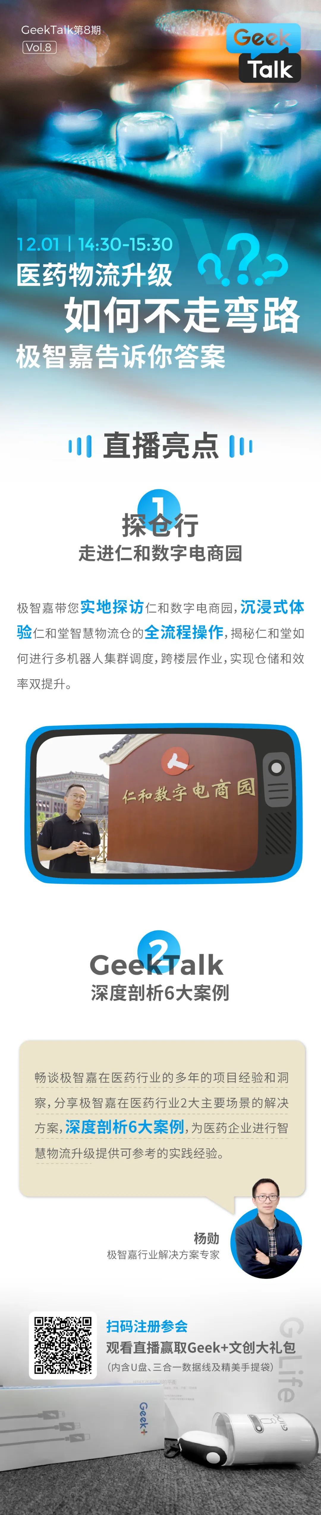 医药行业如何进行物流升级,实现快速ROI,全流程更高效、更智能,12月1日(周五) 14:30-15:30,锁定极智嘉直播间,行业解决方案专家将告诉你答案。