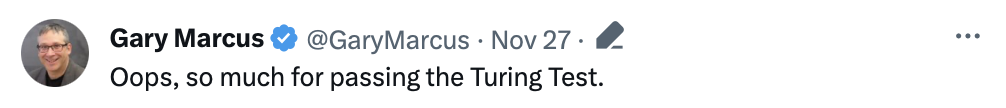 马库斯对此调侃道,通过图灵测试的梦想落空了。