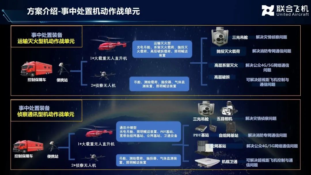 继TD220多功能应急救援无人直升机、TD550全场景消防救援无人机先后在实战中屡立新功,此次新平台的推出,联合飞机已形成了事中处置作战单元的全链路装备体系。