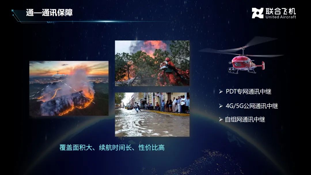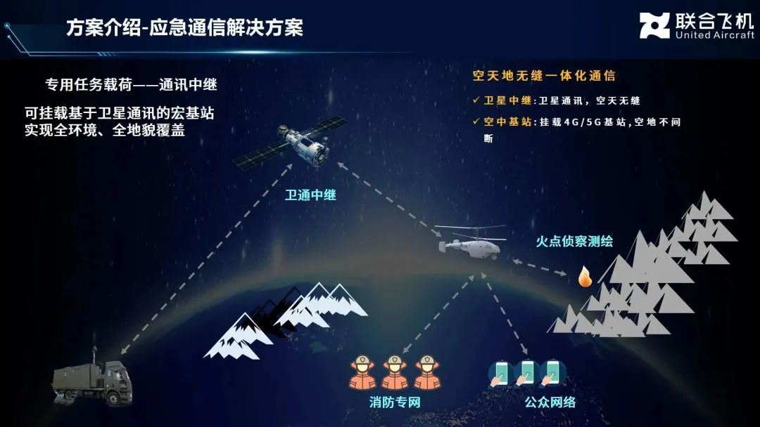 持续升级,创新战法。此次展会现场,联合飞机全新发布了应急通信无人直升机。其最大载荷达200公斤,续航时间超过6小时,搭载通信设备后飞抵灾区空域,为80平方公里范围内提供5G覆盖信号,支持2400位用户同时进行语音、短信和上网等服务。