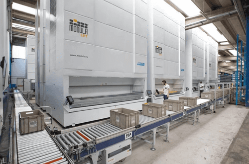 配备垂直提升模块 (VLM) 的仓库实现了显着的空间优化,直接转化为存储容量的增加。这一技术奇迹有效地利用了垂直空间,最大限度地减少了存储所需的占地面积,同时最大限度地增加了可存储的产品数量。VLM 通过自动提升机制确保轻松存取物品,快速检索和交付货物,从而消除不必要的手动运输。
