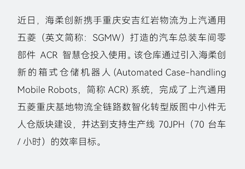 海柔创新(HAI ROBOTICS)创立于2016年,是全球领先的物流仓储机器人公司,致力于通过机器人技术和人工智能算法,提供高效、智能、柔性的物流仓储行业解决方案,帮助全球各行业的企业提升物流仓储效率。