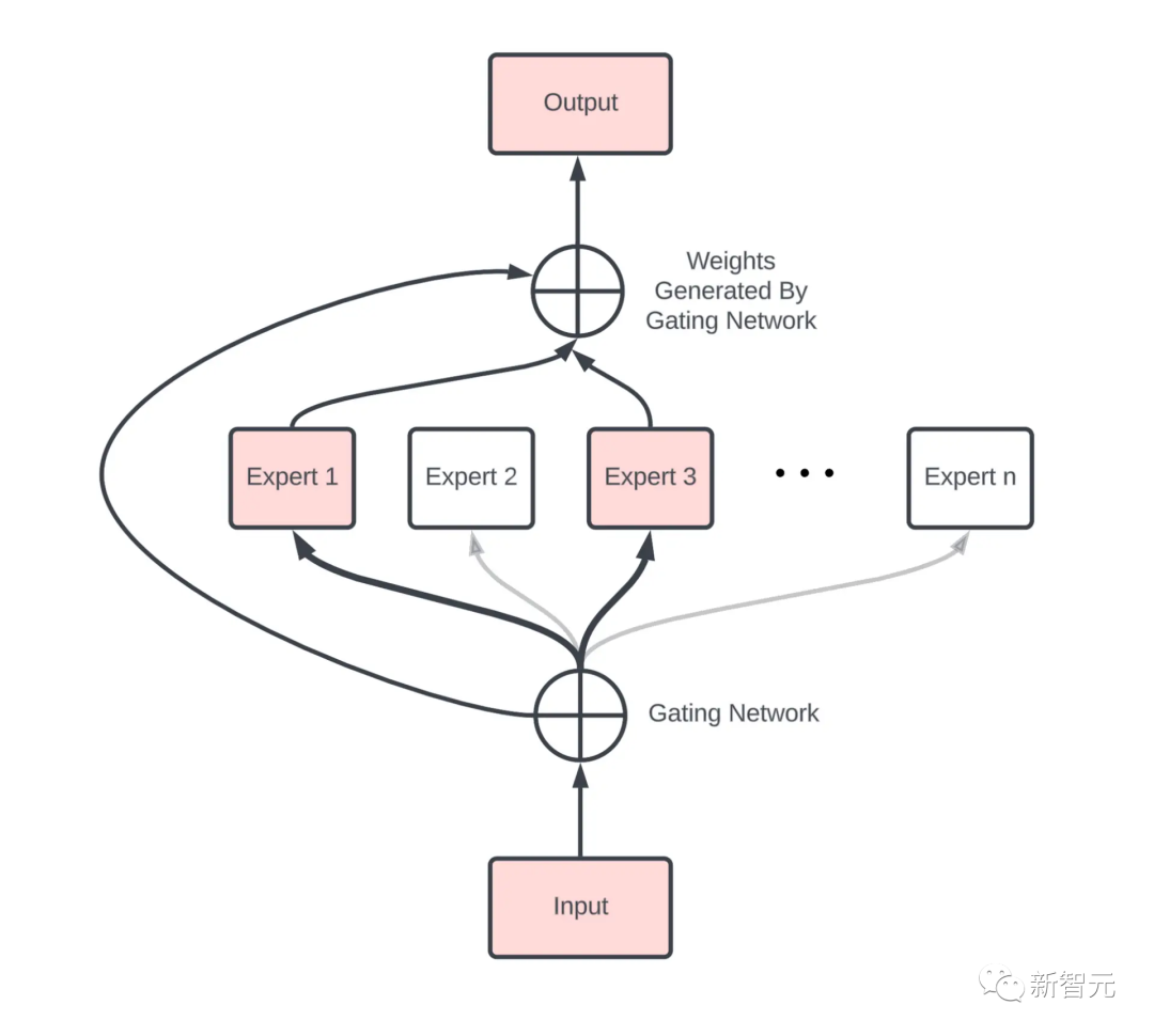 MoE还包含门控模型(Gating Model),用于解释每个专家做出的预测,并根据输入选择信任哪个专家。