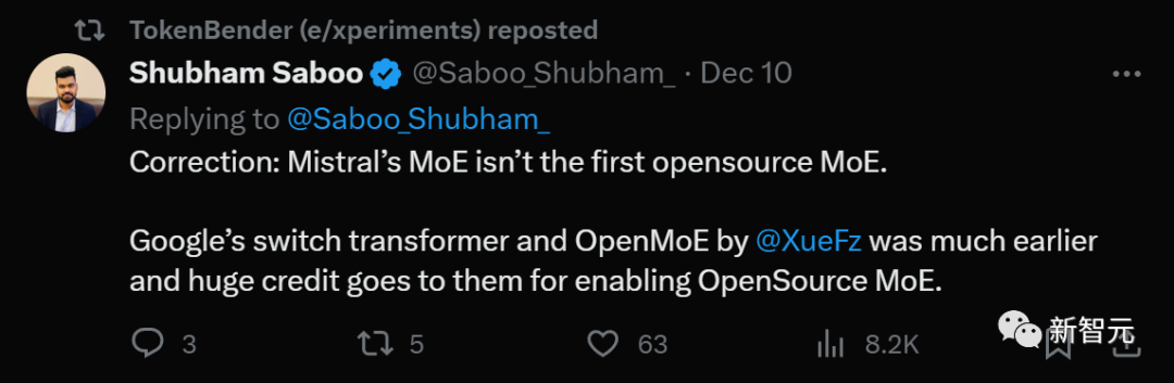 曾在英伟达实习的新加坡国立大学博士生Fuzhao Xue表示,他们的团队在4个月前也开源了一个80亿参数的MoE模型。