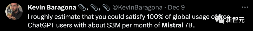 有人粗略估计,每月大约300万美元的Mistral 7B可以满足全球免费ChatGPT用户100%的使用量。