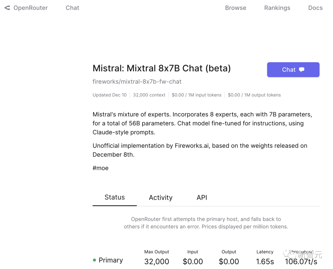 OpenRouter:https://openrouter.ai/models/fireworks/mixtral-8x7b-fw-chat