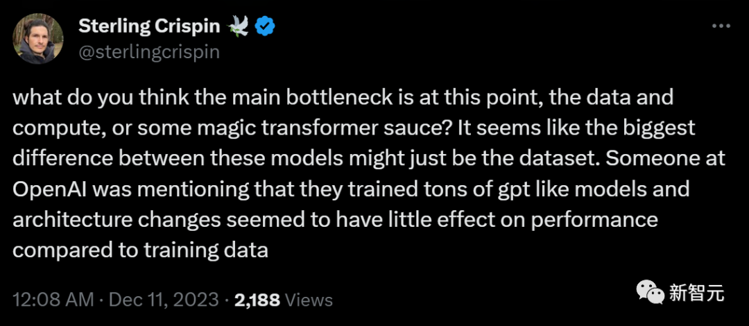 也有人讨论到,所以现在大模型的瓶颈究竟是什么?是数据,计算,还是一些神奇的Transformer微调?