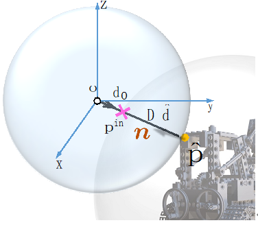 由于在场景表面边缘处的深度值往往存在突变(存在不连续性),而神经网络又是连续函数,上述ray-surface distance field在表面边缘处容易预测出不够准确的距离值,从而导致边缘处的几何表面存在噪声。好在,设计的ray-surface distance field有一个很好的特性,如图5所示,每个估计的三维表面点的法向量都可以通过网络的自动微分以闭合形式轻松求出。因此,可以在网络推理阶段计算表面点的法向量欧氏距离,若该距离值大于阈值,则该表面点被视作离群点并剔除,从而得到干净的三维重建表面。