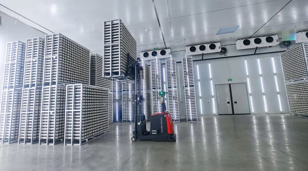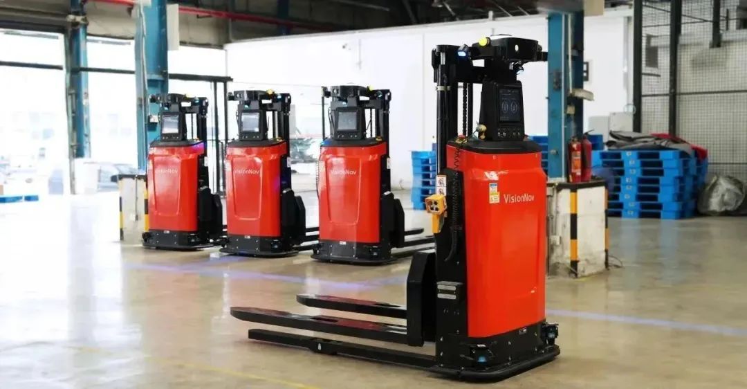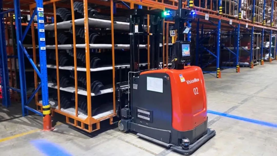 客户导入VNP15堆高式平衡重无人叉车+VNR14前移式无人叉车+RCS2.0中控调度系统,完成8米以上四层货架高位存取,物料在WIP区、注塑区、喷涂区等区间自动转运。