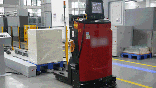 客户导入未来机器人VNE20 平衡重无人叉车+ RCS 2.0 中控调度系统,实现物料平面转运,自动上下货架。