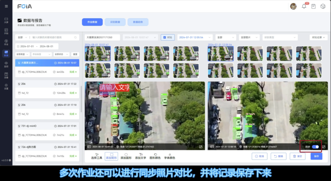 掌握现场情况与数据的动态变化趋势也至关重要。复亚智能无人机管理平台支持多次飞行记录的照片同步对比,保存并记录数据变化。通过历史数据对比,用户能够发现长期趋势和变化。