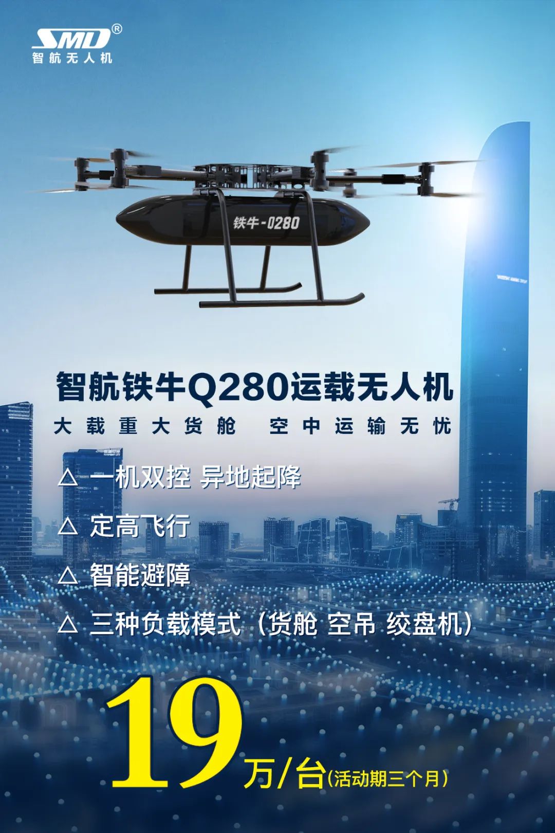 基于市场调研和行业用户的需求反馈,深圳智航无人机重磅推出铁牛Q280运载无人机(先前链接→《智航铁牛Q280大载重大货舱,让空中运输无忧》),这款产品是一款高性能的垂直起降多旋翼无人机,具有携带便捷、操作简单、动力强劲、支持双控异地起降和多重安全冗余设计等特点。