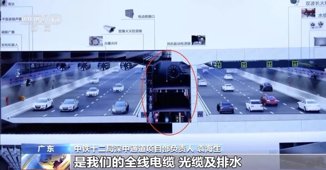 中管廊是深中通道海底隧道安全运营的“中枢神经”,分为上中下三层,最下面一层是全线电缆、光缆、给排水、消防管道的铺设位置。