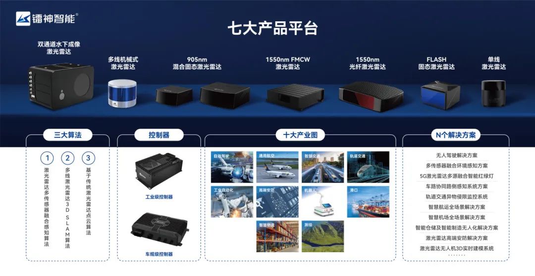 深圳市镭神智能系统有限公司成立于2015年2月,是行业内唯一一家荣获国家科技进步二等奖的企业,获评国家级专精特新“小巨人”企业,是国家级高新技术企业,以强大的自主研发实力成为全球领先的全场景激光雷达与智能机器人系统解决方案提供商,致力于打造全技术路线、全领域应用、全国产化的高性能激光雷达及行业应用方案,构建了七大激光雷达产品平台+三大算法+两大控制器+N个全场景解决方案的业务生态,以高端、稳定、可靠的激光雷达环境感知技术赋能产业升级,服务覆盖自动驾驶、智慧交通、轨道交通、通用航空、机器人、智慧物流、高端安防、港口、测绘及工业自动化等十大产业生态圈;在智能机器人领域,公司专注于智能机器人技术的研发与应用,打造了世界领先的3D SLAM无人叉车/AMR系统解决方案,适用于各大制造业自动化及物流仓储运输领域;镭神智能致力于实现“让交通更安全,让机器更智能,让生活更美好”的企业使命。