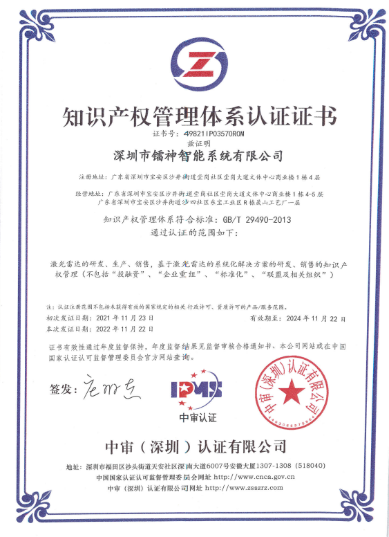 镭神智能深知知识产权对于企业发展的重要性,因此始终将知识产权管理作为企业发展的重中之重。公司建立了完善的知识产权管理体系,获得知识产权等管理体系认证,涵盖了专利申请、保护、运用等多个环节,确保了公司知识产权的完整性和有效性。