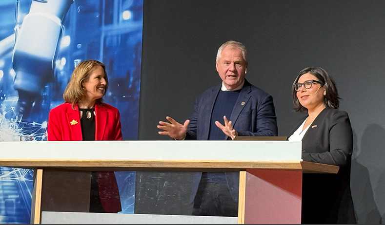 从左到右依次为:加拿大驻德国大使馆代办 Evelyne Coulombe、加拿大下一代制造业 (NGen) 首席执行官 Jayson Myers、加拿大政府 2025 年汉诺威工业博览会加拿大执行负责人 Christina Bilyk。