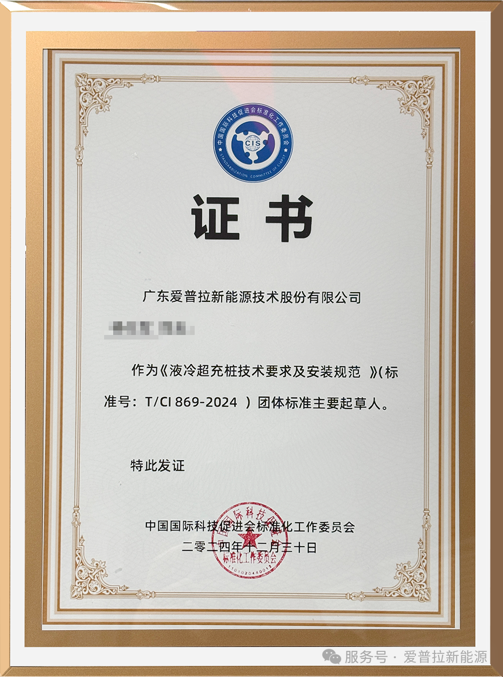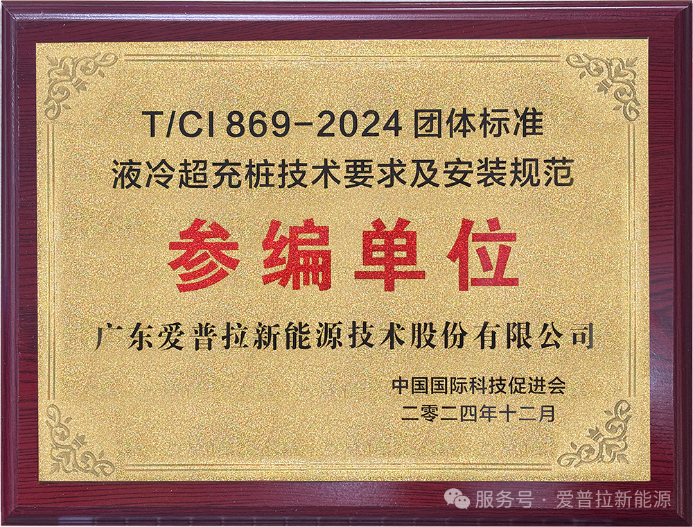 近日,新能源领域的先锋爱普拉新能源,凭借其在液冷超充技术上的深厚积淀与创新突破,荣耀加冕T/CI869-2024团体标准《液冷超充桩技术要求及安装规范》的参编单位证书。