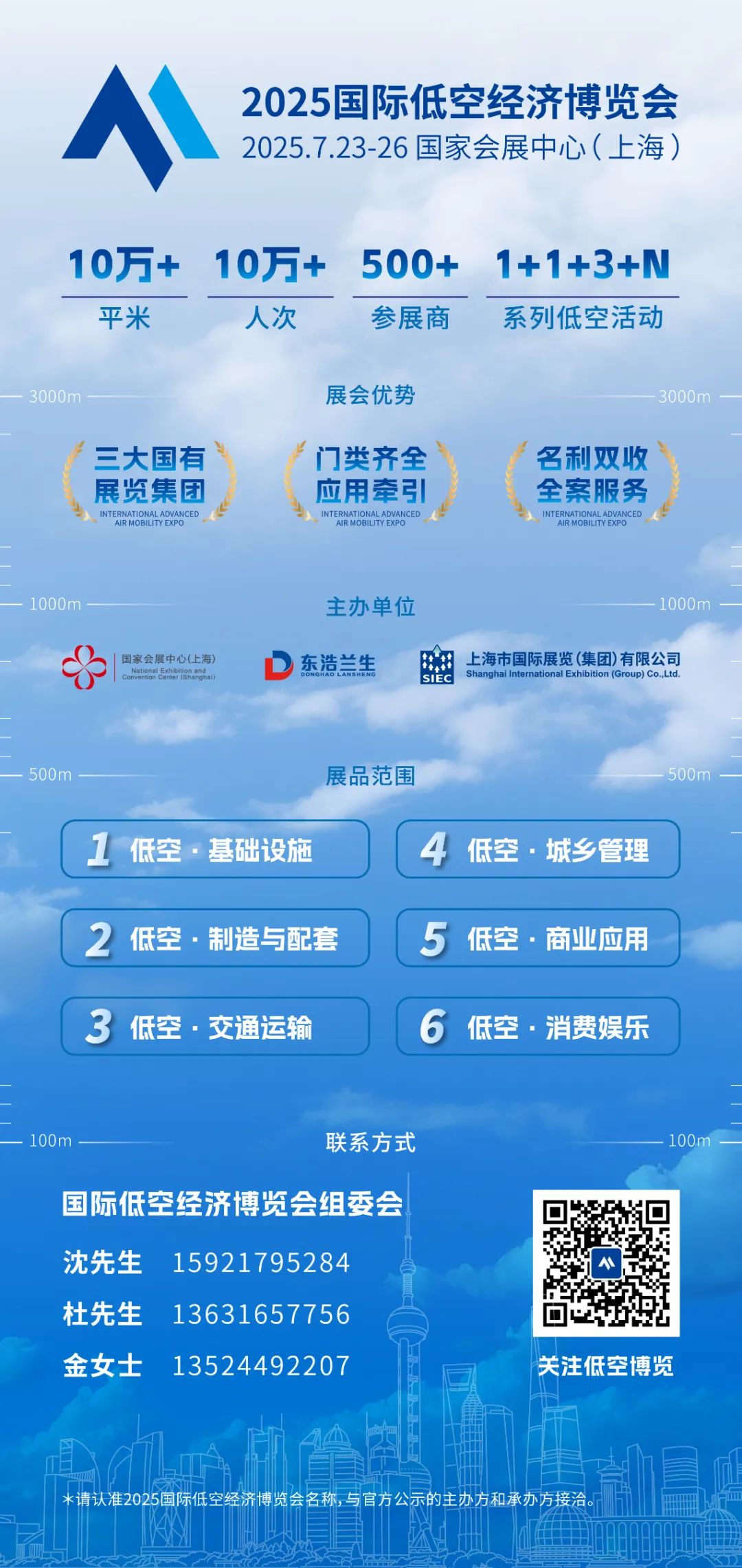 7月23日-26日,2025国际低空经济博览会将在国家会展中心(上海)举行。英国皇家航空学会中国代表处将作为博览会国际支持单位,参与国际范围内博览会的推广工作。同时,国家会展中心(上海)将作为联合主办单位与英国皇家航空学会的低空经济旗舰项目,未来空中交通国际论坛(AAMIC)深度合作,共同打造低空经济产业国际交流的“新高地”,服务国家战略,推动低空经济产业发展。