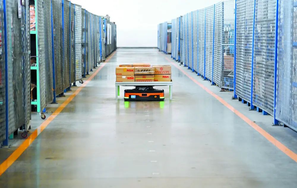 走进石煤机公司第二联合厂房,记者看到一台精致小巧的搬运机器人沿着地下二维码铺就的“路线图”,载有生产组装用的零部件,在物管部库房和装配车间、智能科技分公司之间自动往返穿梭。