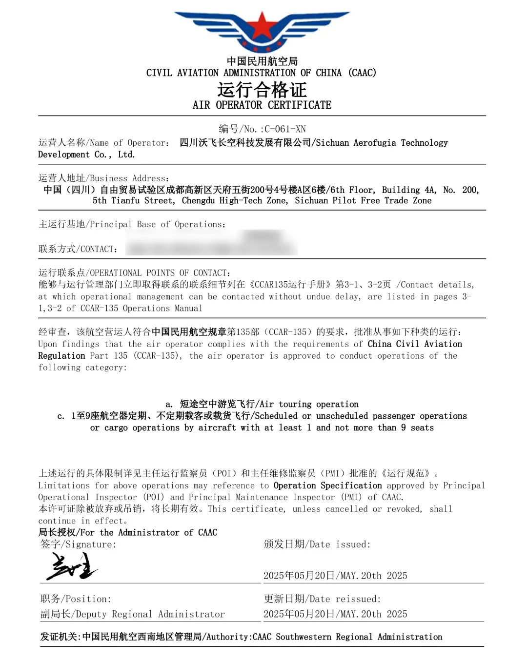 沃飞长空此次以直升机申请135运行资质,旨在为eVTOL后续运营储备技术能力。此次获证也意味着沃飞长空可凭借“技术研发+适航审定+场景验证”三端协同,通过先行先试验证低空场景运营全流程,打通从技术验证到场景落地的最后一公里,从而形成可快速复制的低空经济解决方案。