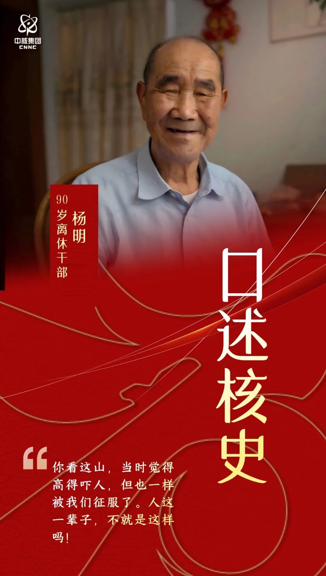 中国核工业创建缘于一块石头,这块被誉为“开业之石”的铀矿石于1954年问世,见证了中央领导人对发展我国原子能事业的战略决策,也见证了我国核工业的起步与发展。作为中国核工业硬岩型铀矿开采最早的亲历者之一,杨明的职业生涯与那段“寻铀之路”完美融合。