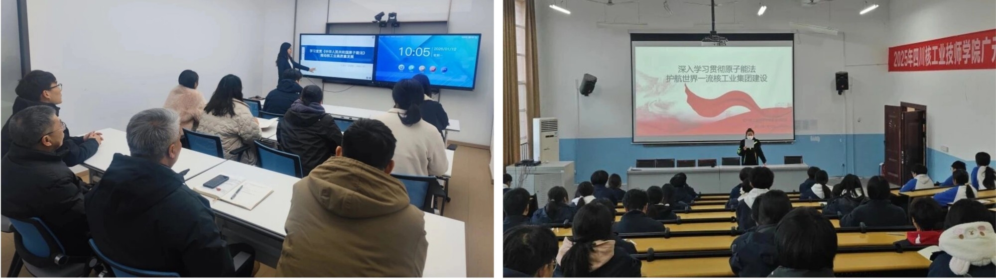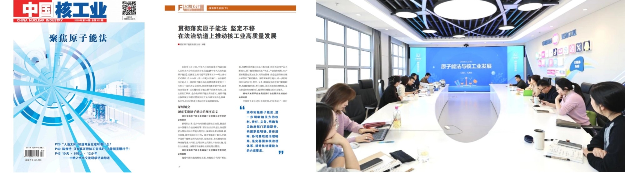 核动力院通过院党委书记领学集团党组《认真学习贯彻原子能法 谱写我国核工业高质量发展新篇章》署名文章、院总法律顾问解读原子能法等活动,推动全院兴起学习原子能法热潮。院审法部编制《涉核法律法规汇编》,在院公众号开设“原子能法大家谈”栏目,聚焦基层科研拍摄《落实原子能法,护航核动力事业行稳致远》普法视频,多措并举,提升全员法治意识。