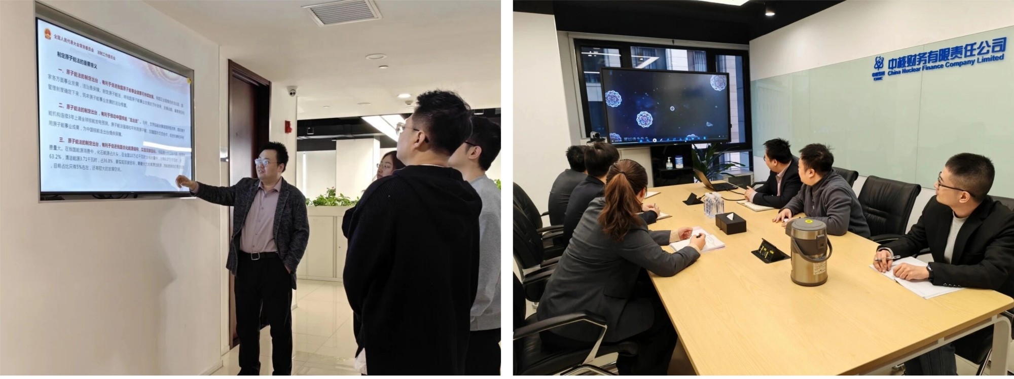 中核财务通过宣传屏展示、集中学习、线上答题等多种形式,深入开展原子能法学习宣贯,并结合国家法律法规与金融监管政策组织研讨,促进法律合规意识与工作实践有机结合。