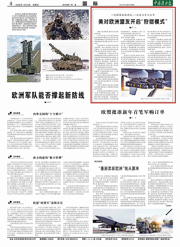 美国一边威胁夺岛、一边售卖军火,目的是用霸权手段谋求私利。这不仅是对跨大西洋同盟关系的考验,更是对现有国际秩序的冲击。阻止这一趋势,关键在于各国共同维护以联合国为核心的国际体系,坚守国际法基本准则。这已成为国际社会的共同课题。