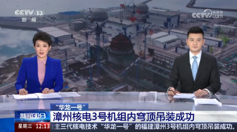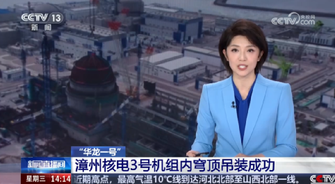 CCTV-13《新闻直播间》:“华龙一号” 漳州核电3号机组内穹顶吊装成功