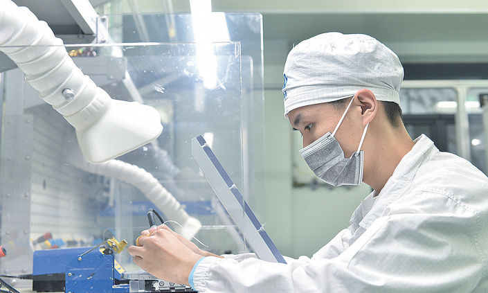 图为员工正在利用改进的工装生产产品。李长江 摄