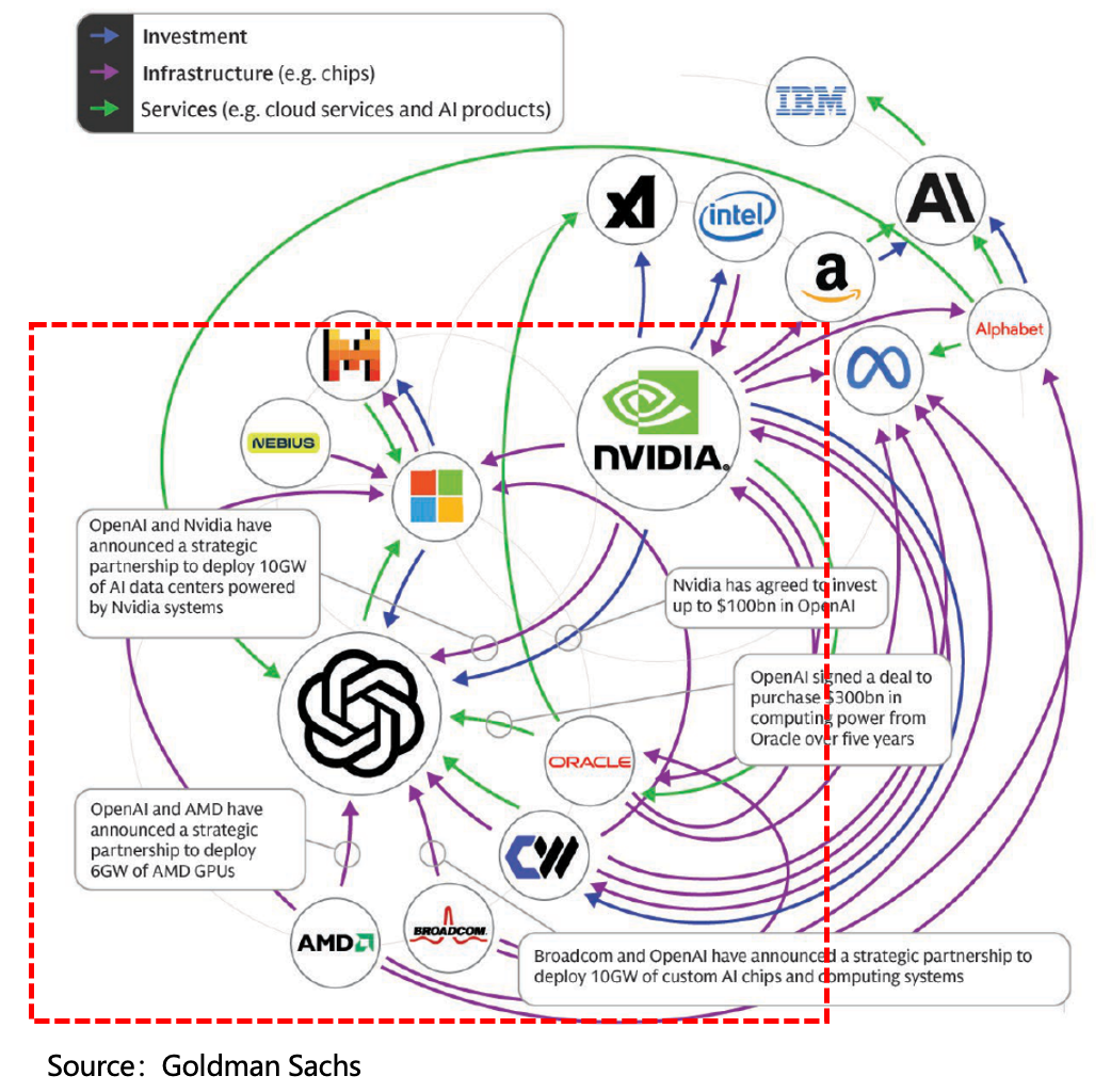 9月末以来,AI算力产业链来了一波“大乱炖”,各家的竞争or合作or背刺or股权关系,简直是剪不清、理还乱。海豚君整理了一下重点新闻,大家也可以先通过关系图感受下这错综复杂的关系。