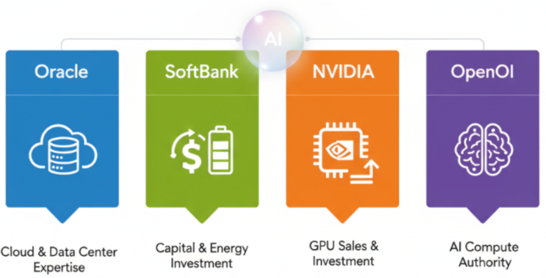 最复杂的合作生态,就是OpenAI的星际之门项目,它将OpenAI与Oracle、Nvidia、软银等公司做了深度关联,被市场诟病的“资金循环”、“算力重复叠加”就在于此。