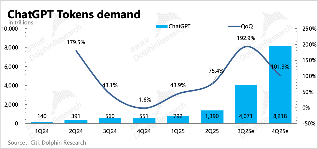 虽然市场认为博通的不确定性最高,毕竟合作细节披露得最少。但海豚君认为,产业链中CSP与GPU芯片巨头之间利益博弈,比如英伟达直接绕过CSP与下游客户OpenAI签直供合同,等于是要把CSP大厂们排除出利益链条外,这必然会加速CSP自研ASIC芯片的进程。