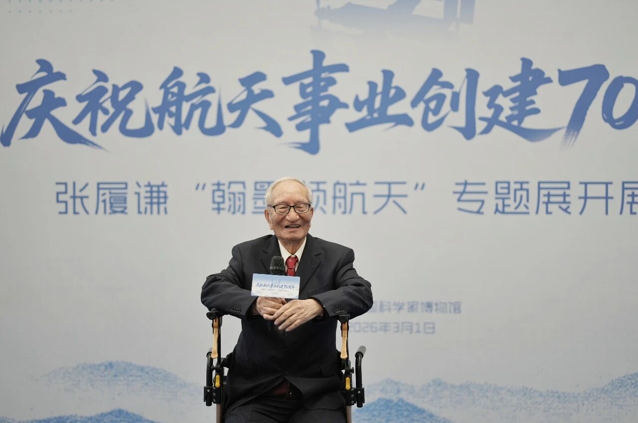 这位老人是中国工程院院士、我国雷达与电子技术专家张履谦。在他百岁生日到来之际,庆祝航天事业创建70周年——张履谦“翰墨颂航天”专题展正式开展。