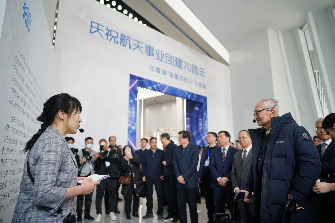 启动仪式结束后,张履谦戴上讲解器,带领参观人员巡展。“那时候我也没学过雷达专业,只学过一点物理基础,知道电容器变化可以改变雷达频率……”队伍随着他的脚步前行,百米长廊里,书法作品与航天史彼此照面,浓缩成一部立体的史诗。