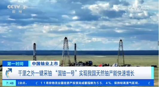 CCTV-2[第一时间]:中国铀业上市 千里之外一键采铀 “国铀一号”实现我国天然铀产能快速增长