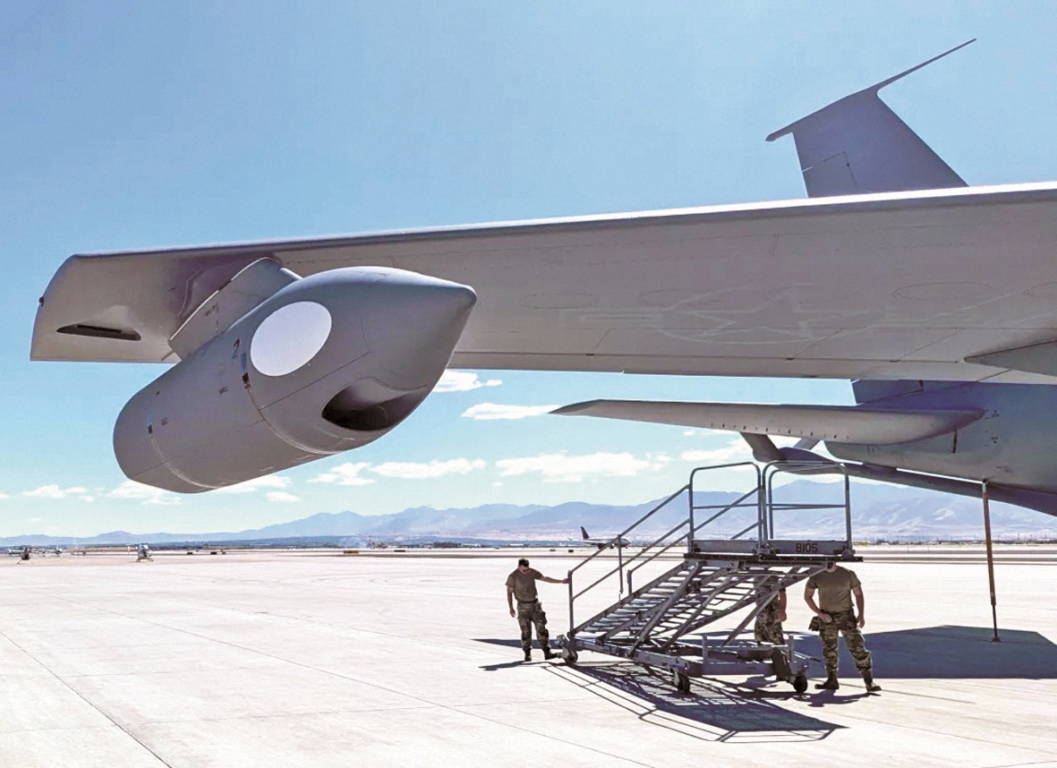 美空军为KC-135加油机的加油吊舱(红圈处)加装新系统。据外媒报道,..[详情]