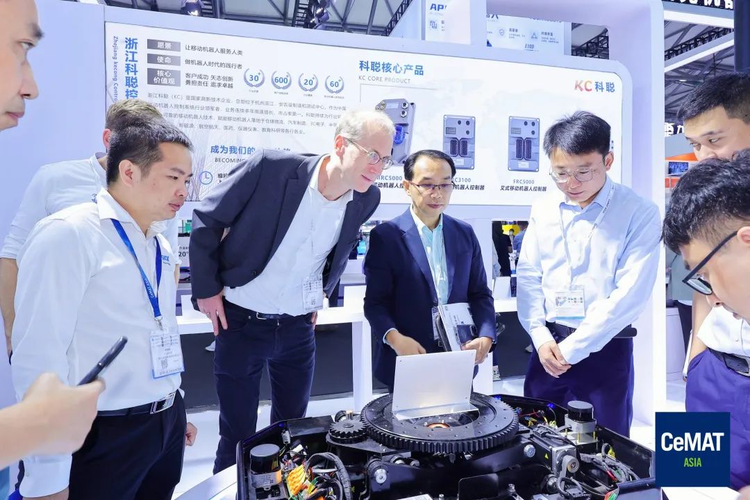 在展会现场,海外客户对科聪展品表现出了浓厚的兴趣,积极驻足并咨询了详细信息。科聪公司全面揭示了移动机器人的内部结构,分享了叉式移动机器人、AMR移动机器人以及其他多种类型的移动机器人整体解决方案。观众通过现场展示的方式看得一清二楚,科聪的控制系统可以满足各种移动机器人应用的需求。