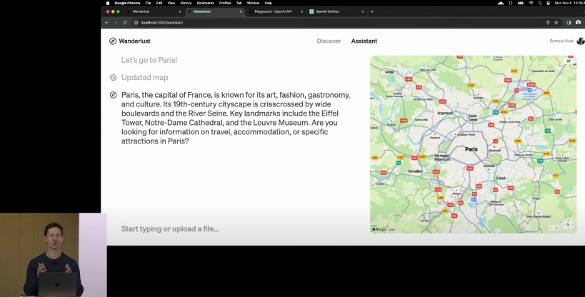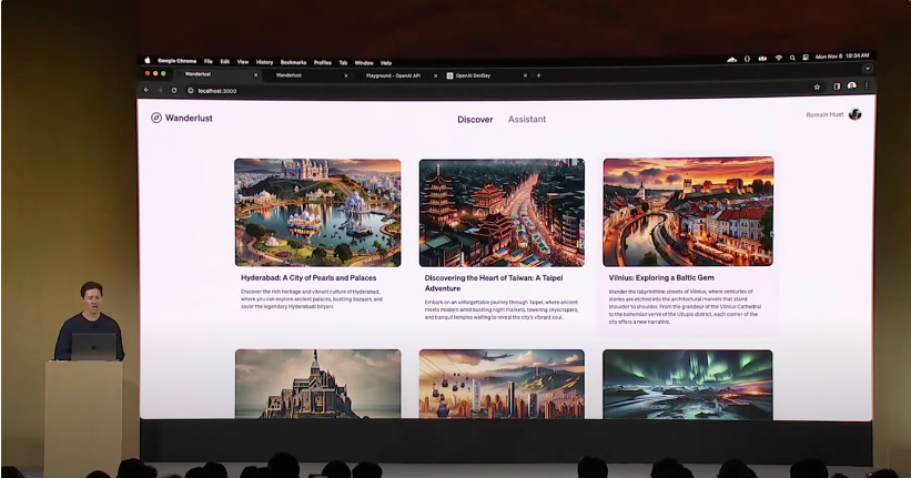OpenAI 开发者体验主管 Romain 现场演示了 Assistants API,他声称开发者只需输入聊天助手的名称、简介,并选择需要使用的模型,接着选定需要的工具即可自动生成相关 AI 助理。