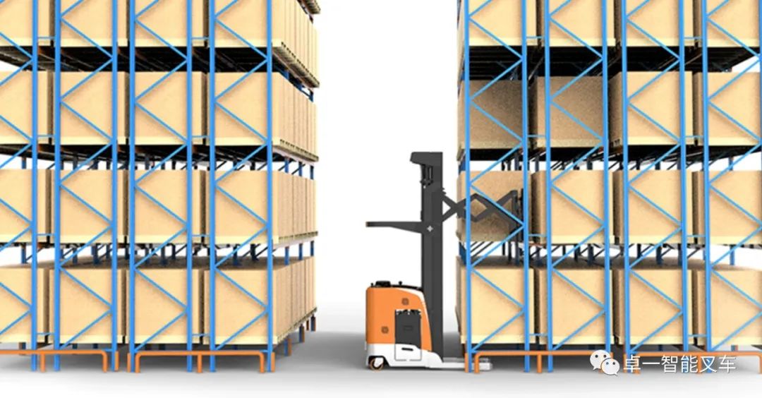 卓一提供了窄巷道系列叉车及货架规划建议,该企业将货架调整为双伸位货架+普通窄巷道货架组合形式,以解决不同类目仓储需要。
