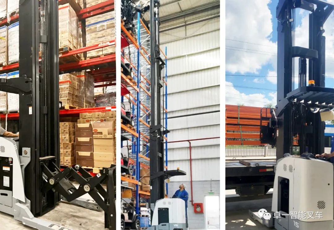 卓一的双伸位剪叉车及人下行三向叉车已在该企业运用一年有余。此前该企业使用的是美国知名品牌叉车,交期过长、价格昂贵、售后服务不及时,难以在短期内实现效率突破。
