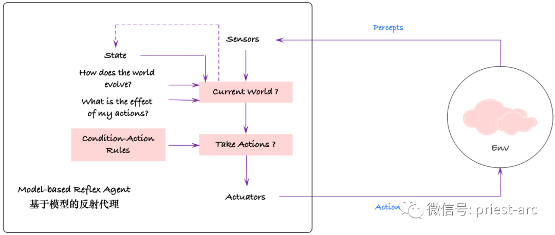 Model-Based Reflex Agents 充分利用了代理内部状态和建模能力,使其在面对复杂任务和动态环境时能够更加灵活、智能地做出决策。这种代理设计方法通过整合感知、模型和推理,提供了更高级的智能和适应性,为解决复杂问题提供了一种有效的方法。