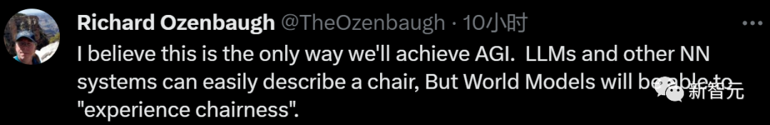 甚至认为这是实现AGI的唯一途径:LLM和其他神经网络系统可以很容易地描述一把椅子,但世界模特将能够「体验椅子」。
